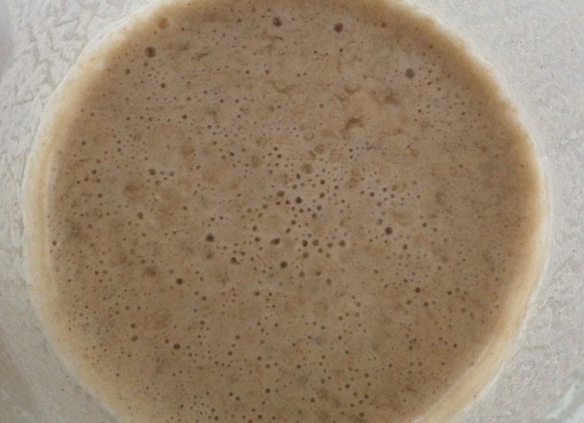 Nach 12 Stunden etwa kräftig umrühren. Der Sauerteig braucht reichlich Sauerstoff.