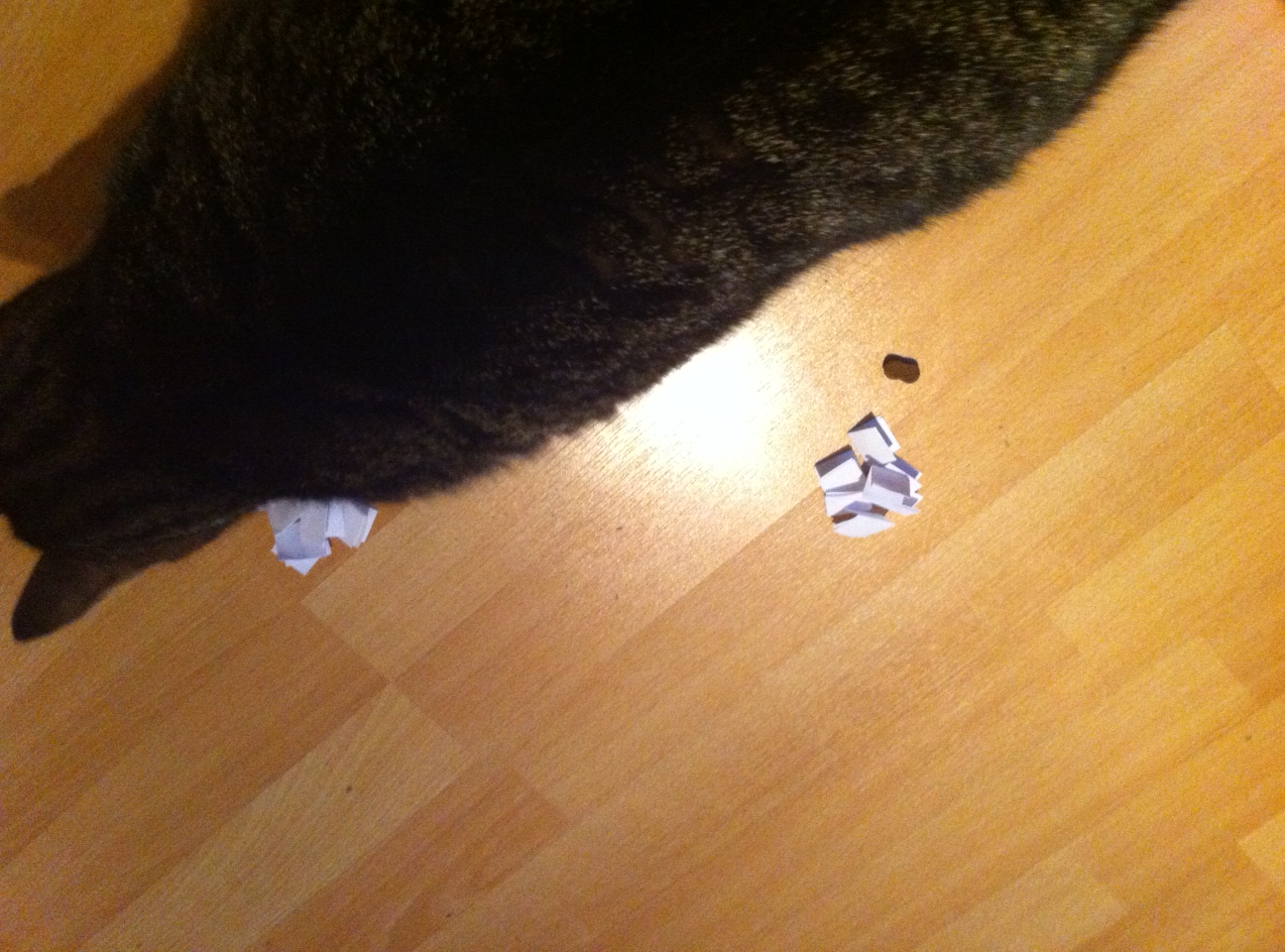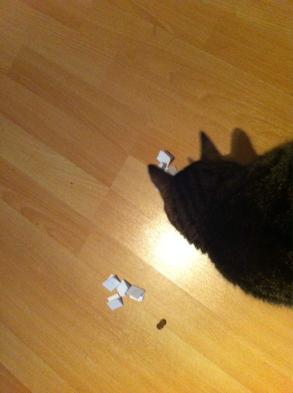 Doch der Reihe nach. Und sorry für die teils etwas unscharfen Bilder. Wenn Kätzelein am frühen Morgen ihre liebsten Snacks riecht, ist kein Halten mehr. Deshalb immer erst Katze mit Leckerlies ablenken, Versuch aufbauen, schnell fotografieren. Katze dürfte für die nächsten Stunden erst mal satt sein. 😀