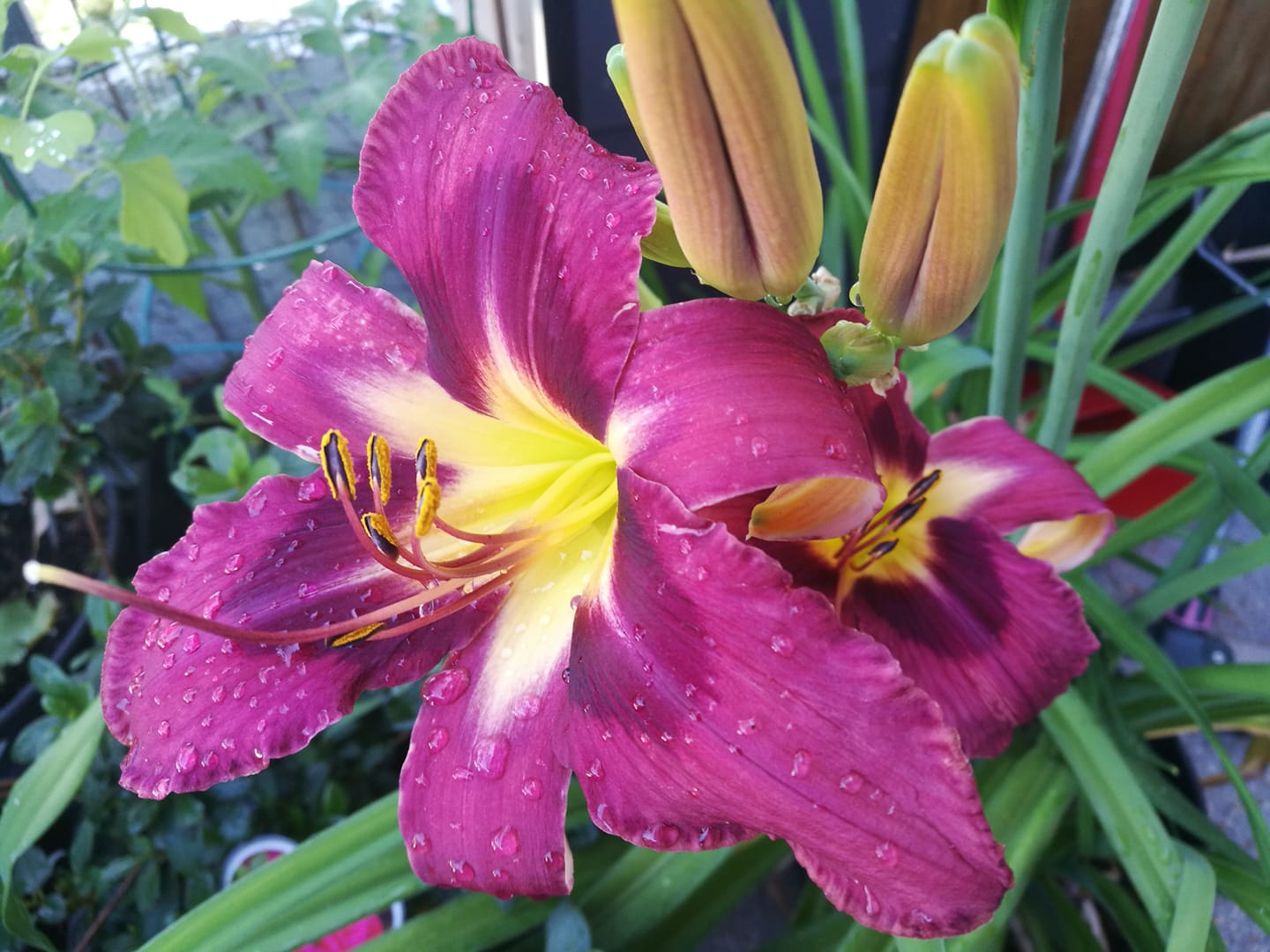 Und weil in einen Blogpost ja auch ein tolles Bild sollte, gibt es eines von einer meiner beiden wunderschönen Taglilien. Genauer gesagt, eines von der Lehmder Zwetschge, so heißt das edele Gewächs nämlich. Unglaublich, was die Natur zaubert und das nur für einen einzigen Tag. Denn länger hält die einzelne, handtellergroße Blüte leider nicht.