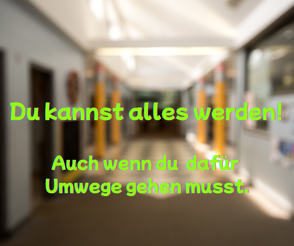 Also, Jungs und Mädels, wartet nicht, bis jemand was für euch tut. Geht euren Weg. Unbeirrt. Und wenn ihr mal Umwege gehen müsst, weil eine Entscheidung falsch war: So what! Aufstehen, Krone richten, nächster Anlauf.